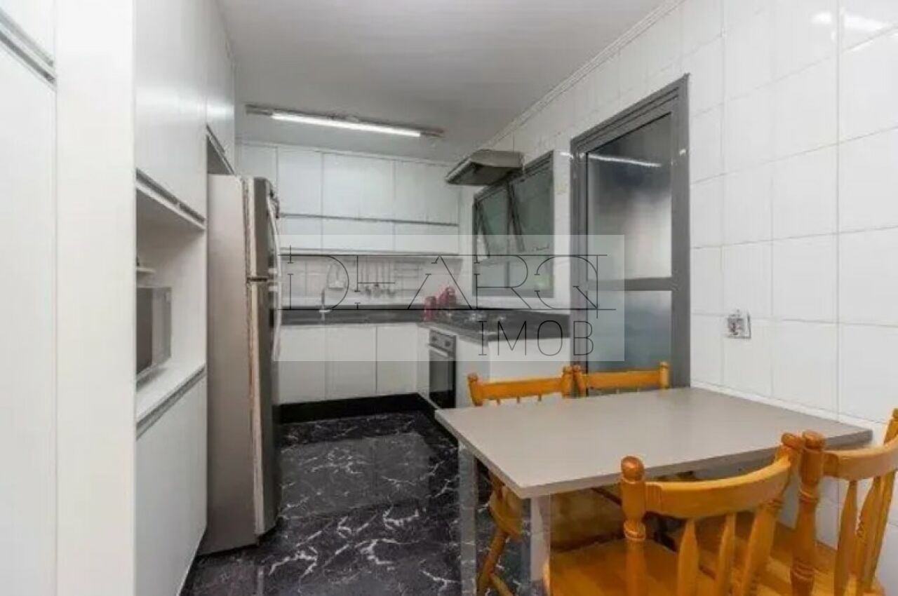Na área íntima, são 4 dormitórios, sendo 1 suíte, além de 4 banheiros no total, lavabo e 2 vagas de garagem. O apartamento possui ainda cozinha planejada, copa, armários embutidos e área de serviço.