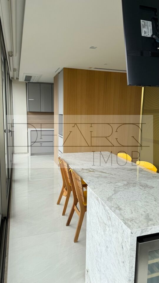 Ao entrar na unidade, você é recebido por um amplo living para dois ambientes, com acabamento impecável em piso de madeira que confere elegância e aconchego imediato. A área social se integra harmoniosamente a um terraço espaçoso e um exclusivo quintal com jardim, proporcionando um respiro verde em meio à metrópole. Na área íntima, o conforto é absoluto: são 3 suítes espaçosas, todas equipadas com armários embutidos de alto padrão. A suíte master é um verdadeiro refúgio, contando com uma relaxante banheira de hidromassagem. No total, o apartamento dispõe de 6 banheiros, incluindo lavabo para visitas e dependência completa de empregados. A cozinha é um capítulo à parte: planejada, moderna, com copa integrada e equipada com gás encanado/natural. O imóvel ainda oferece depósito privativo e impressionantes 4 vagas de garagem.