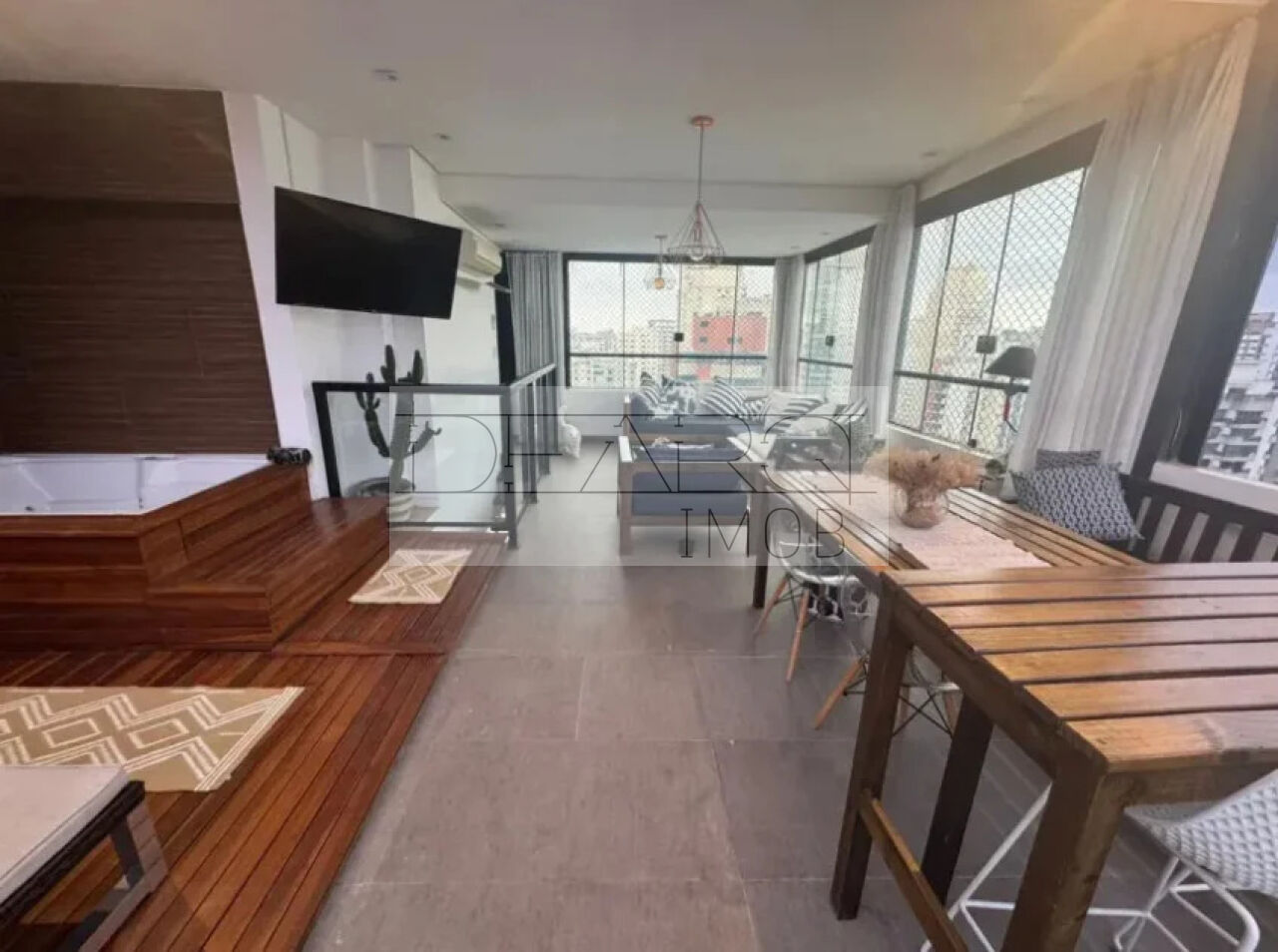 São 363m² de área útil, com espaços bem distribuídos e acabamentos que valorizam cada detalhe. O imóvel possui sala de estar e sala de jantar integradas, varanda gourmet com fechamento, além de cozinha planejada, copa e armários embutidos.